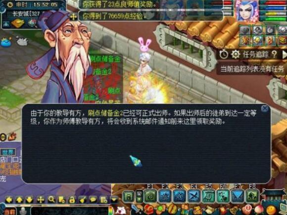 以前的时候在师徒系统中收徒弟和找师傅的玩家都特别的多,但是这都变成了过去式,因为以前的时候玩家获得经验的方式比较少,徒弟出师之后获得的经验奖励比较多,对于师傅来说这部分经验还是很有必要的,现在的玩家不再找徒弟的主要原因还是给的奖励太少了,上面的就是一位玩家徒弟出师以后师傅获得的奖励,虽然只完成了四点教学点,但是只给七万多的经验奖励未免也太少了吧?