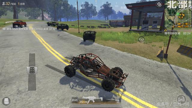 游戏开发人员可能是开停车场出身,地图上,有的地方聚集十来辆车,有的地方数公里之内一辆车没有。所以跳伞时特别讲究运气,你要跳的位置不好,最后必定死在毒圈中——因为就算你是博尔特,你也跑不到安全区。