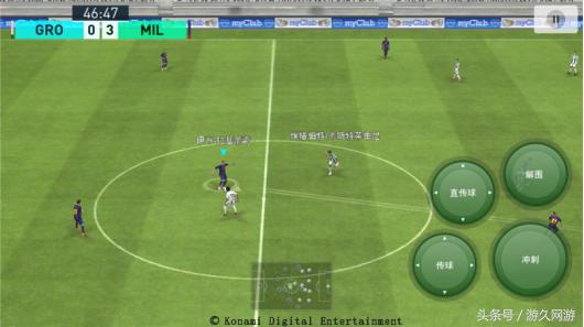 我们就先来说说“适合移动端操作”这一条,《实况足球》手游给与了玩家两种操作模式的选项。一种是“虚拟按键”也就是传统操作模式,玩家拥有4个虚拟建委,会根据攻/防模式的不同,拥有传球,冲刺,直传球,解围等,跟早期主机上提供的键位是相同的。