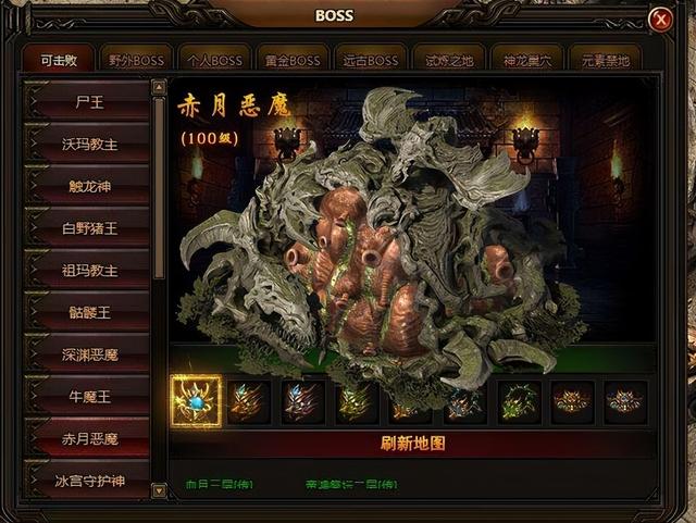 提到赤月恶魔相信大家都不会感到陌生,它被描述为一切邪恶的根源,是传奇和所有黑暗势力的源泉,不但强大而且超凡的智慧,无论是沃玛、祖玛、虹魔等教主们都得听从于它,可以说在1.76版赤月之前,是终极BOSS。