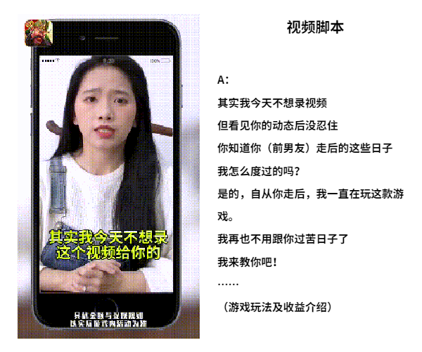 总的来说,游戏广告的套路会围绕着游戏画面、玩法和收益展开,套路主要为:①高质量MV展现游戏画面及人物技能/介绍;②明星、知名主播口播广告;③网络梗/搞笑段子/表情包作为开头,吸引观看。