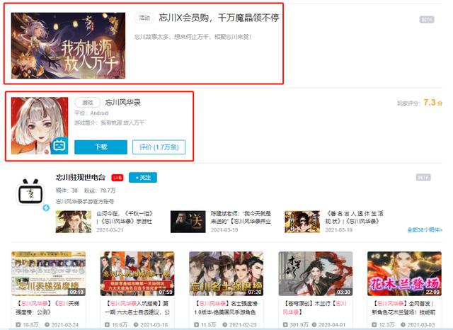 内容营销方面也较强势,不仅与B站联合举办会员购活动,开放下载入口,且相关的原创视频稿件数量上千,最高播放量超400w。国风音乐、历史、武侠成为营销关键词。