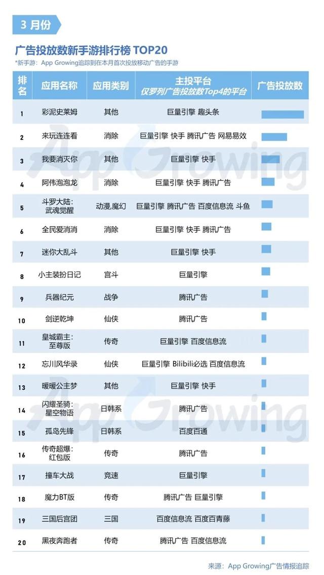 新投放手游上榜数最多的依然是休闲、网赚、消除类手游,但其中也不乏大热IP改编手游,如《斗罗大陆》和《剑逆乾坤》。
