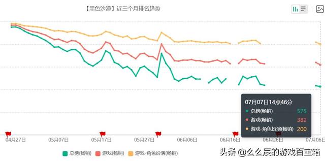 《黑色沙漠》端游爆火后,顺理成章也开启了手游化的道路,由腾讯游戏与创梦天地联合代理发行,游戏在4月26日公测首日就登顶了iOS游戏榜与免费榜榜首。然而原本备受期待的黑沙手游一上线,却迅速高开低走,从登顶到掉出畅销榜500名以外只花了一个月的时间。