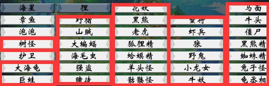 例如 吸血鬼必带鬼魂术 弱点水 夜战 可能带 偷袭 吸血