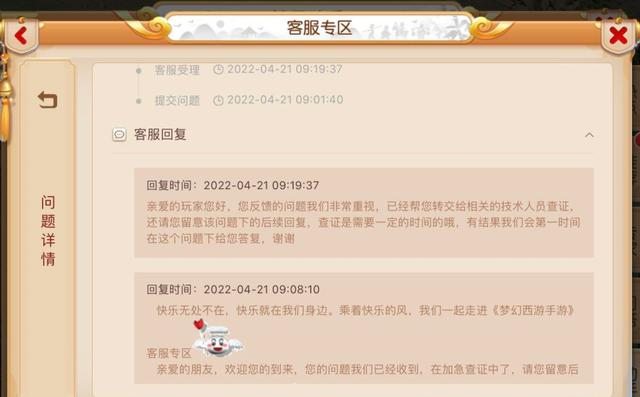 碰到这种情况,该玩家也是比较心急,直接就找了客服专区进行反馈,在讲述了事情的过程后,搞笑的一幕出现了…