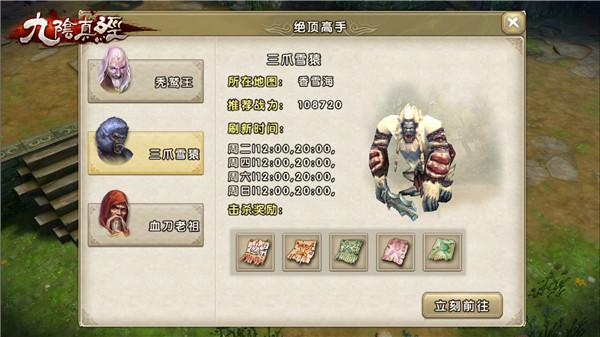 《九阴真经》手游线上拭剑首测正在火热进行中,参与本次测试的玩家在持续不断的体验到。绝顶高手玩法是游戏中突破瓶颈和高回报的代表玩法。玩家拥有一定实力时便可以参与挑战绝顶高手。绝顶高手在各大门派场景刷新,所有玩家都可以参与击杀。根据伤害排名获得对应不同的奖励。包括内功武学残卷,混元功,紫霞神功,无妄神功,逆天邪功,太极拳,龙爪手,雪斋剑法,断情七绝等江湖绝学以及宝物在内的奖励均有机会获得。