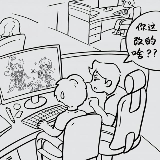 当然,相比较舅舅党的爆料,官方今天放出的概念图更具有真实性。首先来看第一张图,桌子前的两位就是策划,可以看到显示器上有三位角色,分别是剑侠客、超级神狗、以及一位神秘人士(可能是二郎神)。透过这张图,再去看舅舅党的爆料,搞不好大唐真的和超级神狗组成CP。