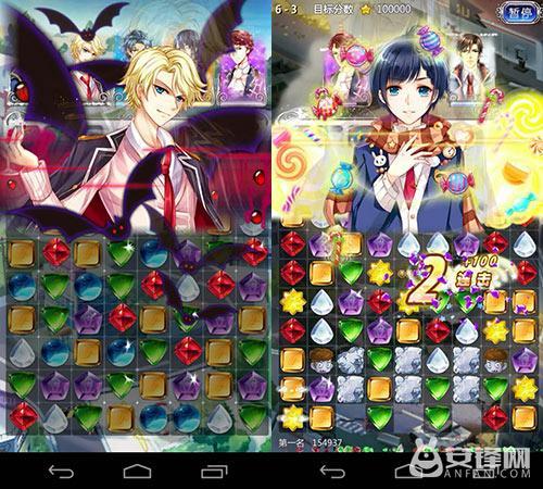 在《男神执事团》中,玩家将扮演一名女高中生,与陆续结识的男执事们一同努力完成拯救地球的重任。游戏剧情以关卡的形式推进,但是与普通三消游戏不同,通关并非是关键所在,毕竟游戏的主干是养成。因此,即便遇到无法过关的状况,只需回溯过去的关卡,给男神们升级技能、收集服装、提升好感度和星级,男神们就会用他们的特殊技能助你旗开得胜!
