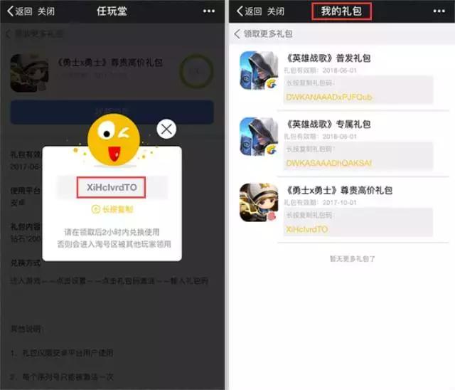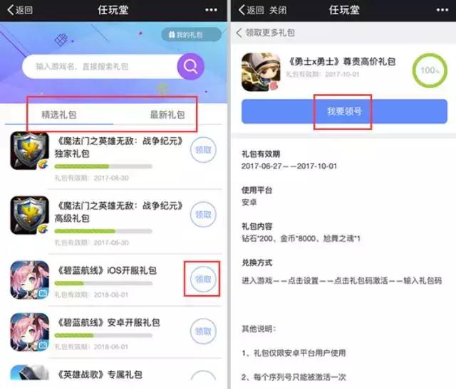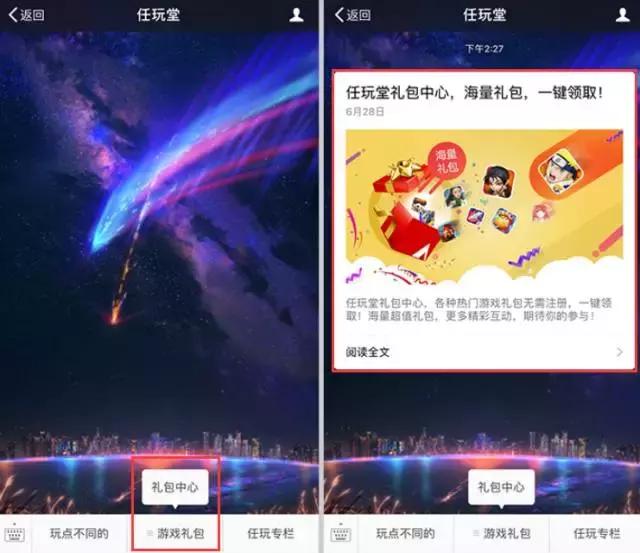 在任玩堂公众号首页的菜单栏中点击“游戏礼包”——“礼包中心”,就能收到相关的推送,不要犹豫,直接进入推送文章!