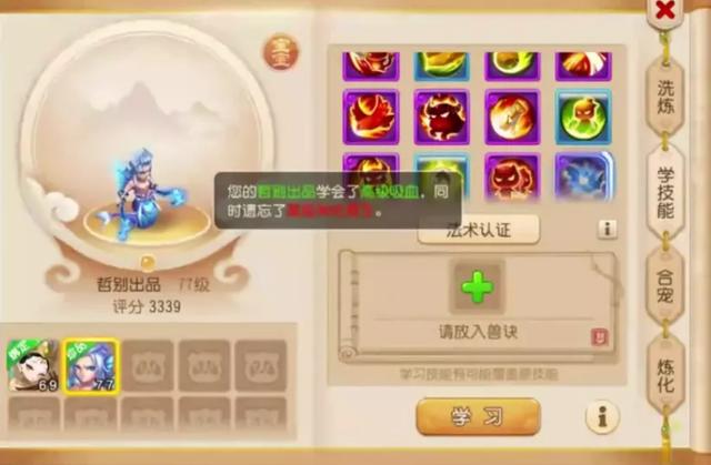 决定了打什么书,接下来就是快刀斩乱麻,随着一连串的技能书拍下,一只资质爆炸的12技能连击攻鲛将军就此问世!