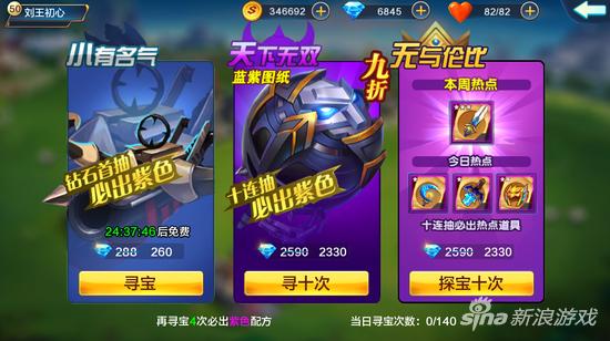 探宝十次分周热点和日热点,每次探宝都会必出周热点或者日热点,拿到称心的装备是不是更容易了呢?而且通过探宝主公也可以拿到更多重复图纸,多张一起打造,出稀有完美,so easy,妈妈再也不用担心你的人品啦~探宝还可产出大量的装备材料和炼化丹哦,主公再也不用担心没有炼化丹炼化装备和材料打造装备了!