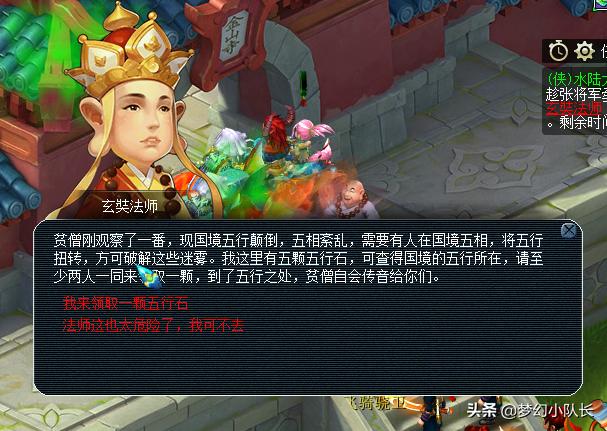 杀完这四个怪在金山寺门口等待唐僧的出现,然后领取五行石头,组队领取,每个人都需要领取一个。