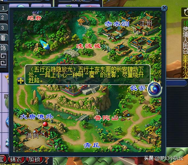 全部安放完之后有个号,队长号点开地图勾选上任务,就有提示五行的属性以及位置,根据任务栏里的提示按顺序去点击五行石