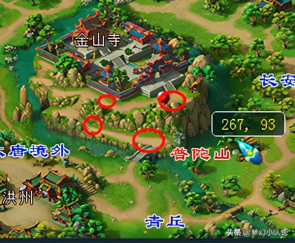 全部点完五行石之后需要返回金山寺门口,这里可以直接再次点击五行石 有一个传送
