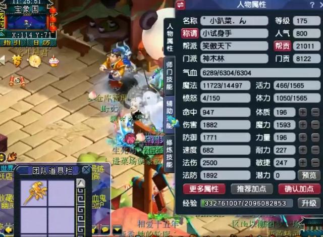 一个175级神木林角色,目前法伤属性达到了2500,防御1771,法防1892,速度也达到了682,属于任务法系的天花板属性了。