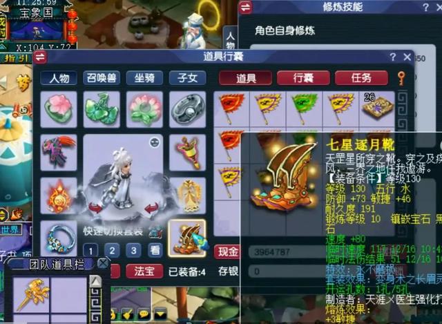 然后鞋子装备配置的是130级的,镶嵌了10段黑宝石的不磨装备,熔炼敏捷3点,点化长眉灵猴套装效果。