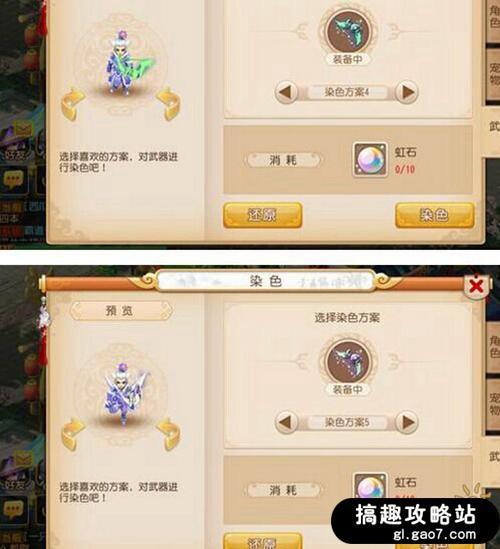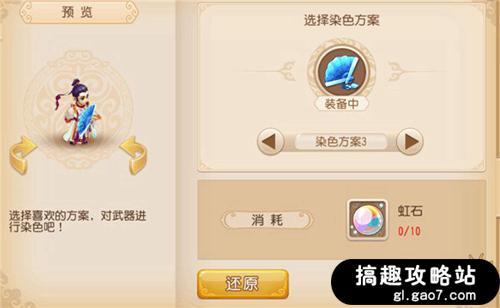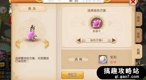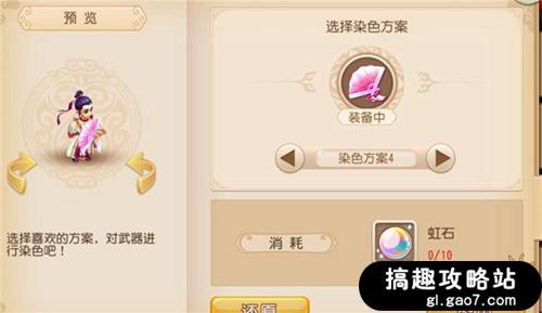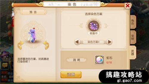 60级以上的武器染色统一都是要花费10个虹石。虹石只能在商城用仙玉购买,68仙玉一个。不可通关金币购买或其他玩家赠送获得。