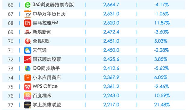 2016年9月移动AppTOP1000排行榜 数据来源:易观千帆