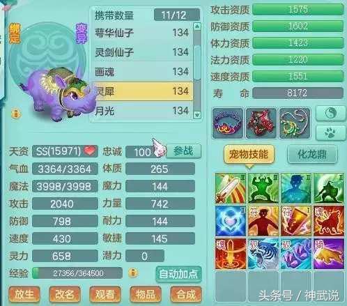 装备的话,有法爆、烽火,缺少愤怒腰带,感觉这很套路,有慈航,有起死,衣服还没易成长,换好的话灵力又会有所提升,不过这件强壮也是很好,很难抉择。
