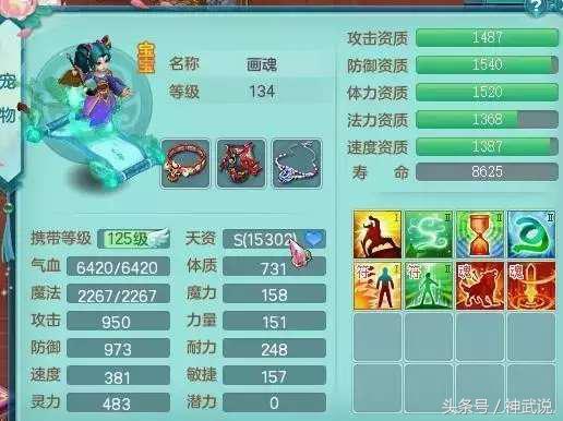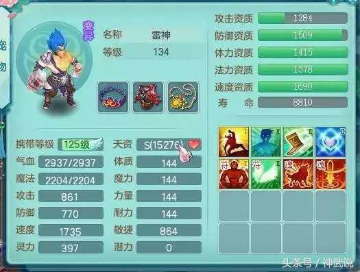 属性是,有附魔(125攻击 266血 745魔法 118防御),因为没玩过这个等级,这期你们来点评下小石是怎样的吧。