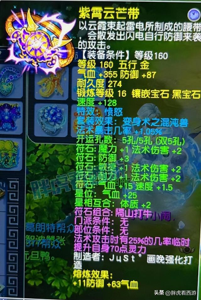 腰带是全服第一的法爆几率愤怒腰带,1.05%法爆几率,418气血+98防御。