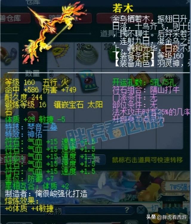 从神木林到魔王,最重要的就是武器的变化,伦哥有一把双蓝字魔王武器:160神佑+琴音三叠弓箭,749超高伤害,单加35体质。