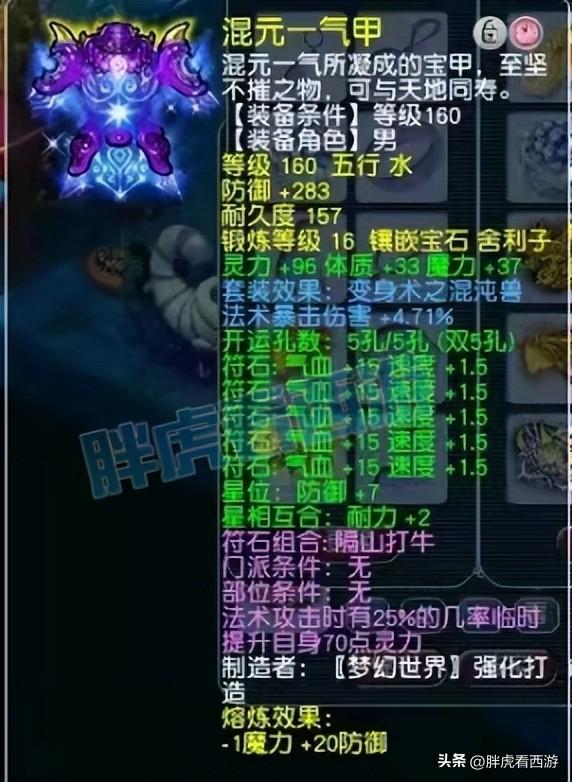 接下来是超高属性衣服:4.71%法爆伤害+体魔69+303防御,头盔部位是常规晶清。