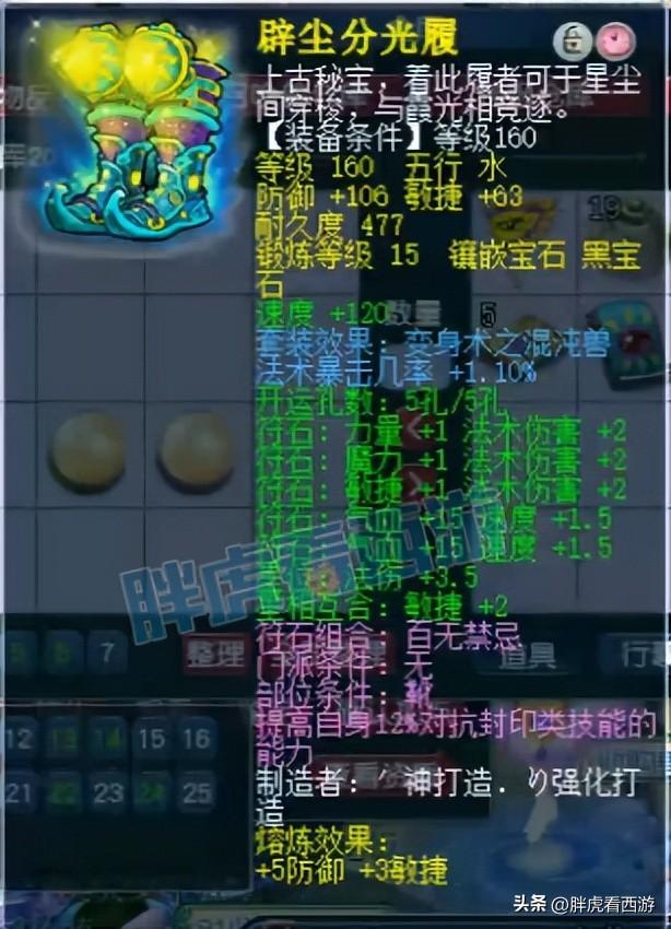 由于武器带了琴音三叠,所以伦哥鞋子可以带白板法爆鞋,111防御+66敏捷,1.1%法爆几率。