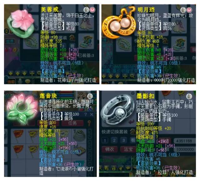小姐姐在前排灵饰上采用了7锻6固伤,这套前排不仅价值高,流通性也非常不错,刷任务非常舒服。后排灵饰选用了双血双防双法防的抗性灵饰,能提升极高的综合属性。此外,她还选用了6级锐不可档,进一步拉高了固定伤害,灵饰细节可以用拉满来形容。