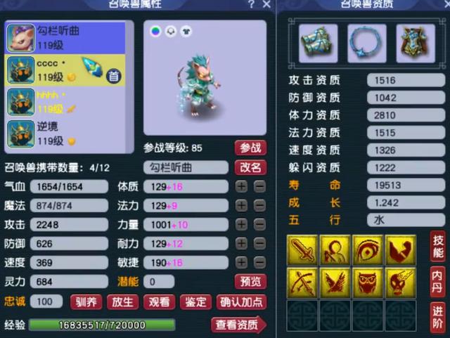 第一只召唤兽为8技能“网红鼠”,就冲着技能、资质、成长、进阶110,就足以证明其身价。