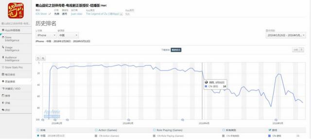 《花千骨》出现之后,各大佬也推出过许多影游互动手游,但《花千骨》的成绩至今无人能破,其中较为接近的还得属《蜀山战纪》,曾在畅销榜前20名中保持了2个多月,也拿到过第5的好成绩,其背后也是爱奇艺联合发行,这其中似乎另有玄机。