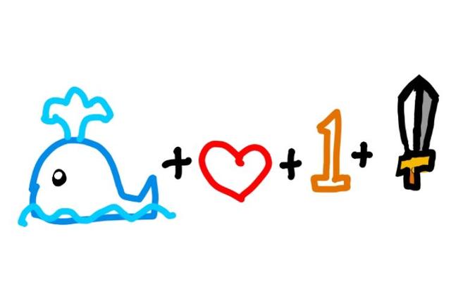 第一张图来咯!大家不要着急看谜底,先自己猜一猜。鲸鱼+爱心+1+剑=?