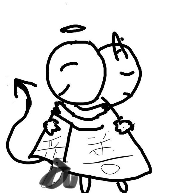 两个小人抱在了一起,一个是天使,一个是恶魔,这难道是?