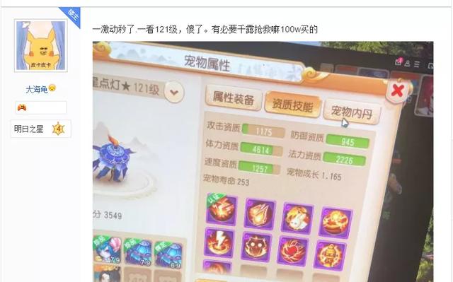 虽然这只吸血鬼的各项资质都不错,并且技能也是无可挑剔,兼顾日常任务与擂台竞技,但是等级竟然达到了121级!我们都知道,角色所携带的宠物等级最高不能超过人物10级,而这名玩家的等级目前仅只有69级,所以这只宠物在买到手后只能放在仓库当观赏宠,怪不得这名玩家会如此郁闷。