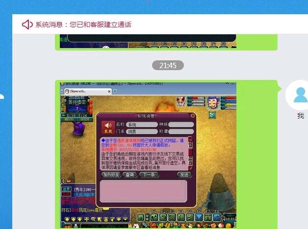 游戏被处罚的截图提供给客服,等待结果!