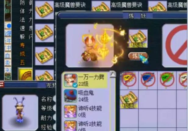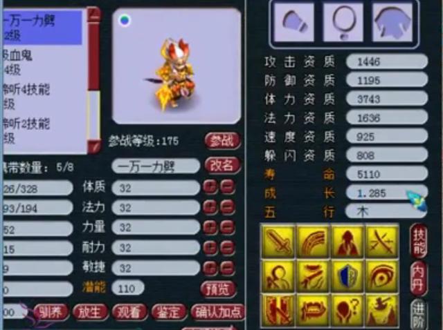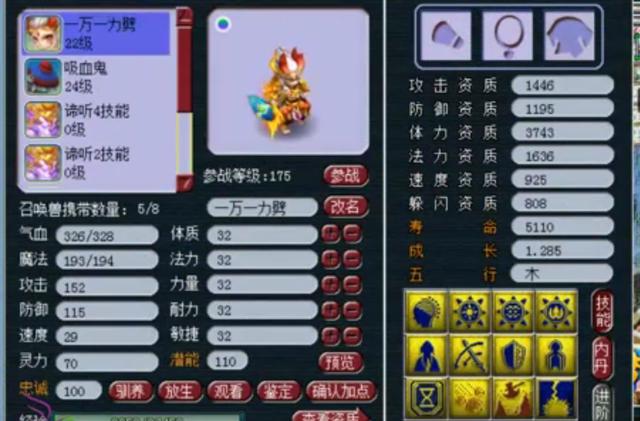 辅助技能上完了,最后上一天高级必杀、夜战以及偷袭,结果成了这样了。虽然还有一个防御低级技能没有掉,但是老板忍住了。据兽哥主播称,这只童子卖五六万是没问题的。