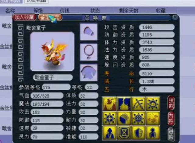 虽然是一只野生童子,但是技能炸裂,资质高超,依然可以在藏宝阁上标价8888元。
