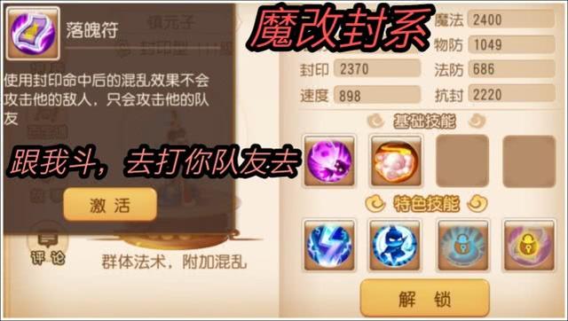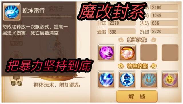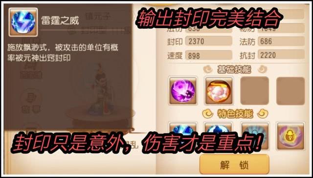 本身系统给镇元大仙的定位为离魂封系助战,然而镇元大仙并不甘于做一个平平无奇的封系助战,于是专攻法术《飘渺式》,将必生的封印功力融入到了法术伤害中去,而且二者结合的完美无缺,在无敌的伤害过程中还可以时不时来个惊喜的混乱封印,堪称魔改封系助战!