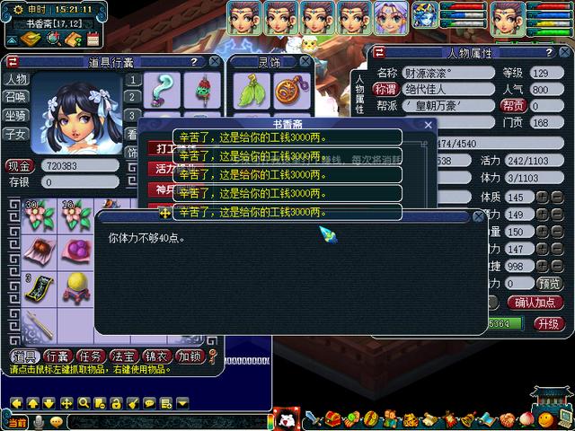首先第一种方法就是大家最熟悉的书店卖体力赚钱,40点体力等于3000两,15000点体力的大概收入在112.5w这样子。