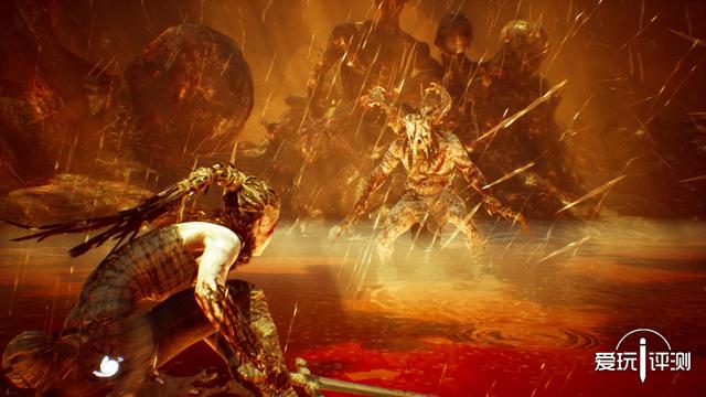 轻击/重击/破防/冲刺/闪避/防御/弹反,这些都是动作游戏的老套路了。《地狱之刃》尽可能把这些元素往写实方向描绘,操作尽可能的简化,动作尽可能的自然甚至粗暴,最终的战斗体验是直觉型的,代入感很强。这游戏的出招表也是隐藏的,招数要自己摸索,但不去摸索也没事,随机应变就是干。关于“打击感”这是个争论不休的玄学,笔者觉得这方面它是一流的,信不信由你。