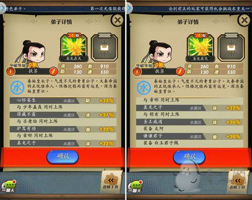 扶苏公子的技能“圣龙在天”极具王者霸气。在攻击敌方全排的同时,还可回复己方同范围所有弟子技能伤害20%的血量,可谓攻防一体;“圣龙之威”特殊效果则可增加己方后排全体20%的内力值,而且在机师位置技能同样生效,是难得的强力辅助技能。