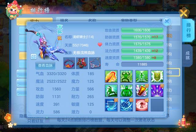 一只蓝心六技能变异龙虾,资质十分“爆炸”,攻击资质1317,速度资质勉强达到了1368,防御资质1265。