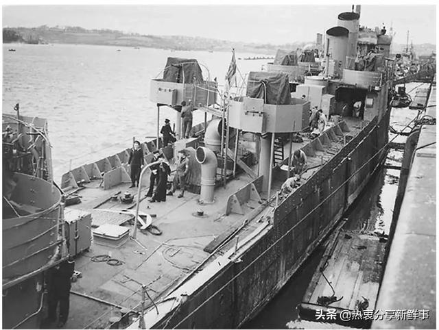 英国驱逐舰坎贝尔敦号正在进行改装,以在战车行动中突袭圣纳泽尔。 (英国皇家海军)