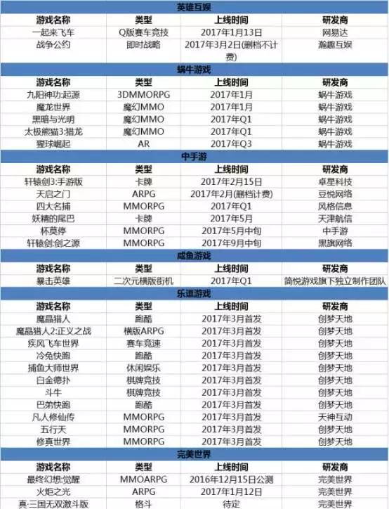 2016年只剩最后一天,2017年32家游戏厂商产品发行计划已经发布,这关系到玩家会有哪些游戏可以玩?一起来看看!