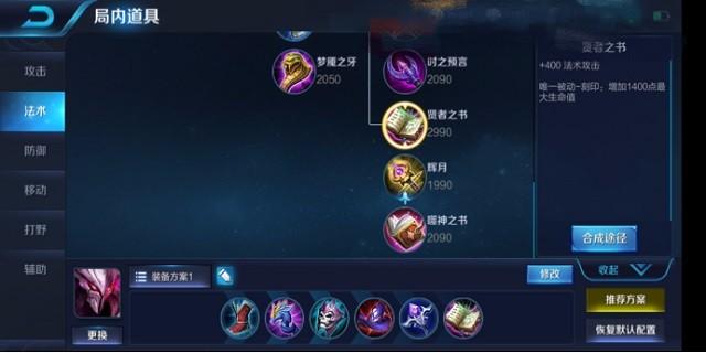最后一件出贤者之书,贤者之书提供了干将400点法术攻击,并且其被动增加了干将1400点最大生命值,这大幅度提高了干将的保命能力。