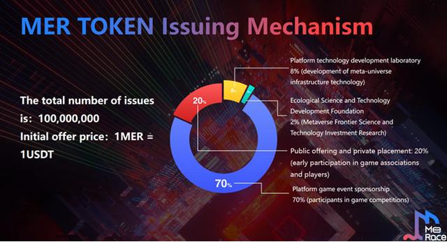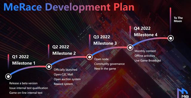MeRace 是一個元宇宙游戏生态系统平台,它的宗旨是在让任何游戏公司通過平平台工具包,轻松快速地將自己的游戏添加到 MeRace 生态系统中,确保生成标准化加密包、NFT 工具库和钱包,并且集成到他們的游戏中。最終目标是创建一个具有分布式网络的元宇宙游戏世界。