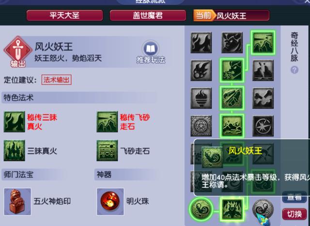 然后是技能,转过来以后发现法伤很难堆,基本的装备9+5配完以后,还是2100不到。于是看一下师门技能,至少把经脉里的60法伤拿到吧。