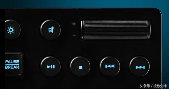 为了方便游戏者对媒体的控制,右上角专用的媒体控制键,加上板载滚动条可以调节音量,或者使用触手可及的按钮跳至精彩场景。每一步设计都是站在游戏玩家的角度考虑,这也是罗技为什么会受到广大玩家的青睐的原因!