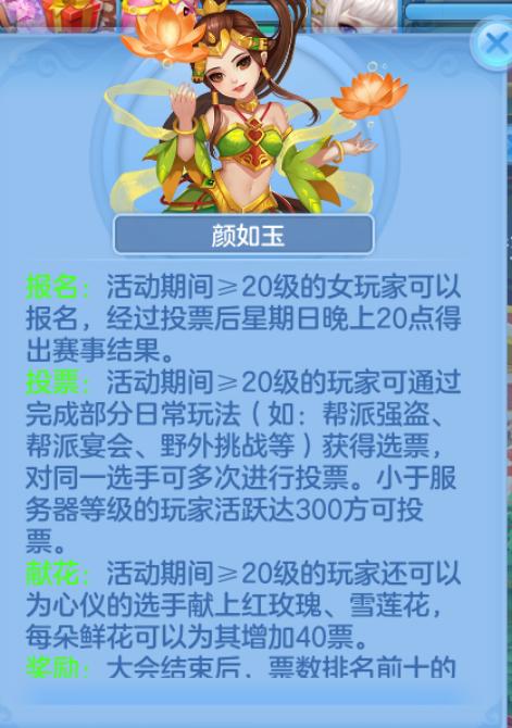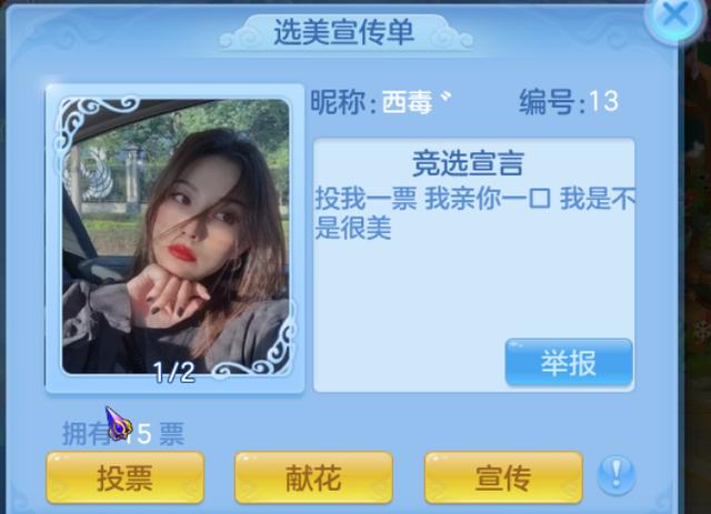 其次是利用好宣传单拉票的机会,除了自己的帮派、亲友之外,多多发世界频道,吸引其他玩家来看自己的宣传单,同时还要发动自己的亲友帮自己拉票,尤其是不能报名参与的男玩家。